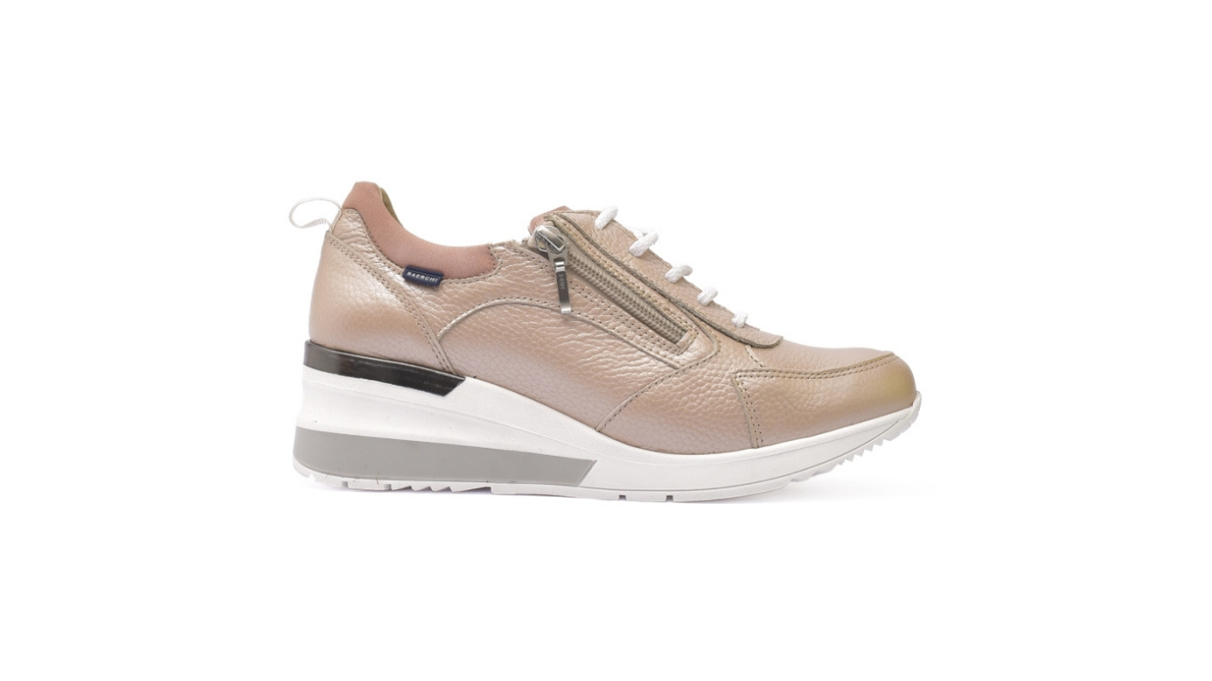 Deportivo casual de cuña para mujer , en piel de vacuno, con cierre de cordón y cremallera y suela de caucho. BAERCHI. «Hecho de España».