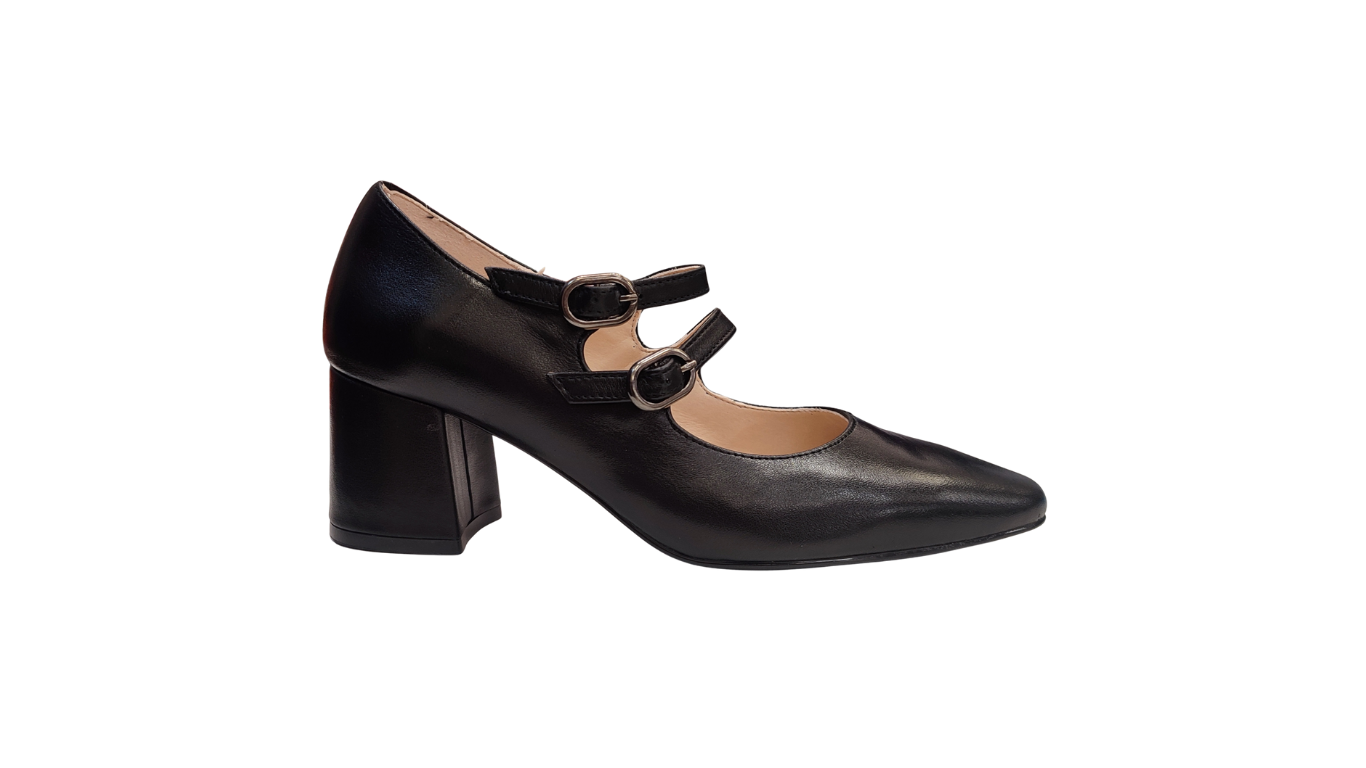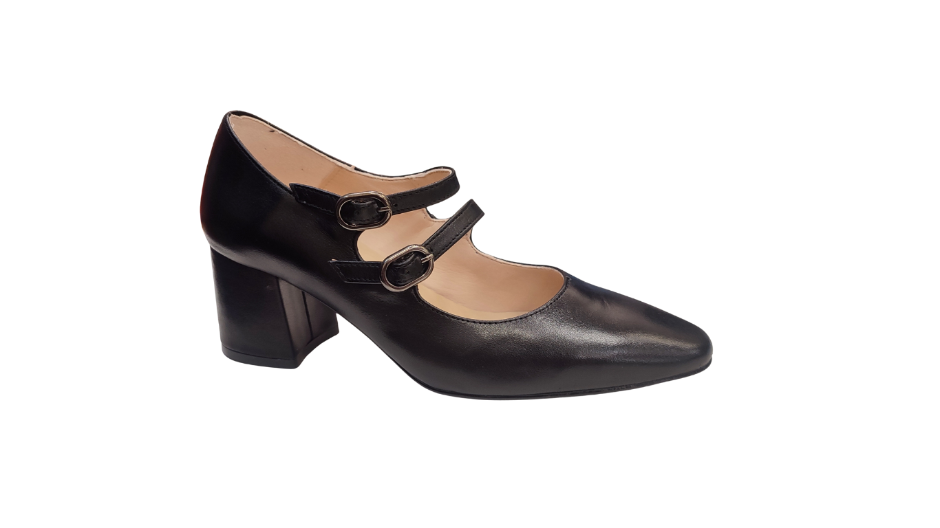 Elegante zapato salón piel, planta de gel, confort y estilo, perfecta sujeción mediante correas.